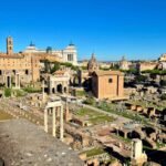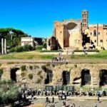 From the former Imperial entrance, we’ll proceed to Palatine Hill, where the remains of the Imperial Palace can be found. The palace was actually composed of various sections, such as the Domus Tiberiana, Domus Flavia, Domus Augustana, and Domus Severiana. Here, during our private tour of the Colosseum in Rome, you’ll enjoy an unforgettable panoramic view of the Roman Forum and the Circus Maximus (Circo Massimo – Great Hippodrome). On the Roman Forum, we’ll also see the probable site of the mythical founder of the city, King Romulus, where his body was believed to have been burned.