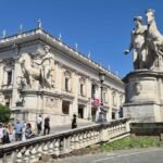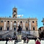 So, dear friends, we will begin our sightseeing tour at the Colosseum, then proceed along the Roman Forum and the Imperial Forums, visiting the Basilica of Saints Cosmas and Damian. We’ll ascend the famous Capitoline Hill, home to the oldest museum in Europe, where Michelangelo left his mark with his architecture. We will then descend to Piazza Venezia and enter the Basilica of the Twelve Apostles, which houses Michelangelo’s original burial place.